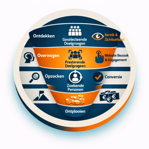 - Een stapje lager in de funnel richt je je op oriënterend verkeer (Overwegen-fase).